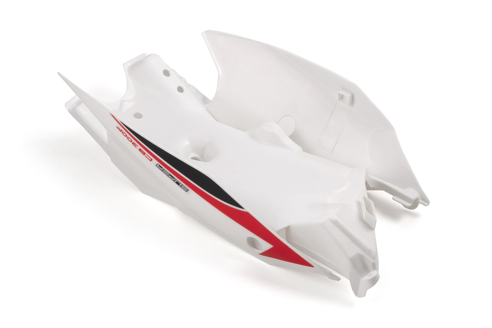 Комплект задней части хвоста (левая и правая сторона) пластика под стиль KTM SX85. Детали изготовлены из прочного и легкого ABS-пластика, идеально повторяют оригинальную форму, легко устанавливаются и обеспечивают надёжную защиту. Комплект выполнен в белом цвете и дополнен наклейками.