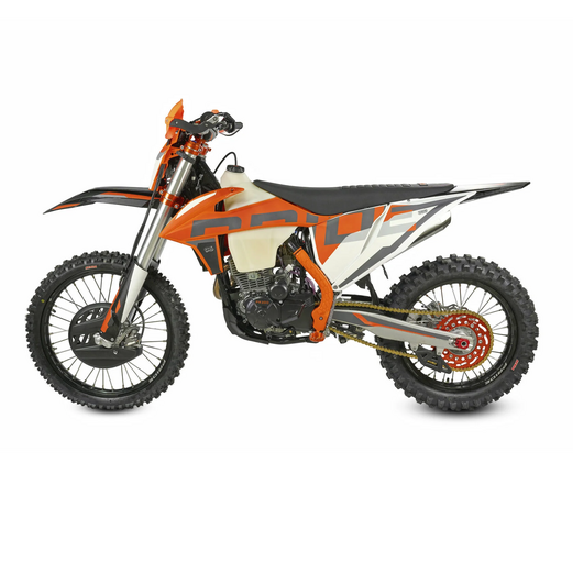 КомплектацияЭлектронная приборная панель, противоскользящее сиденье, защита рамы от протирания ботинками, подножки «AJ1» (алюминий 6063 с шипами), подножка боковая «AJ1» (алюминий 7075-Т6), невозгораемый воздушный фильтр «AJ1» – Twin Air с увеличенной площадью, ведомая звезда «AJ1» (520, алюминий 7075-Т6), защита рук, грипсы OTOM/Lock-On, передние и задние буксаторы «AJ1», откидные алюминиевые рычаги 270, алюминиевая лапка КПП, пульт света КТМ, LED фара 5 линз, моточасы, фрезерованная траверса X trigДвигательМодель оснащена надежнейшим 1-цилиндровым 4-х тактным двигателем ZONGSHEN 175FMN с воздушным охлаждением объёмом 271,4 см3, который выдаёт 25 л.с.ПодвескаПередняя вилка "MNT" перевернутого типа T7 48- 910mm с регулировкой на сжатия и отбой. Моноамортизатор "MNT" также с регулировками. Система прогрессии, обеспечивает равномерную, мягкую работу и увеличивает длину рабочего хода подвески. Также ось крепления маятника совпадает с осью крепления ножки. Это существенно улучшает развесовку мотоцикла.КолесаСпереди и сзади установлены антибуксаторы бренда "AJ1", которые притягивают покрышку к ободу, позволяя ездить по бездорожью при низком давлении в камерах, не давая покрышке проворачиваться во время езды. Размер передней покрышки: 80/100 R21. Размер задней покрышки: 120/90-R18. Модель комплектуется "жирной" резиной "KENDA". Все эти характеристики позволяют мотоциклу отлично себя чувствовать в песке и грязи.Тормозная системаПолностью гидравлическая с армированными шлангами. Спереди и сзади установлен двухпоршневой суппорт. Данная конфигурация тормозных механизмов, позволяет быстро и безопасно оттормаживаться даже в самых непростых условиях.Сухой вес мотоцикла 115кг