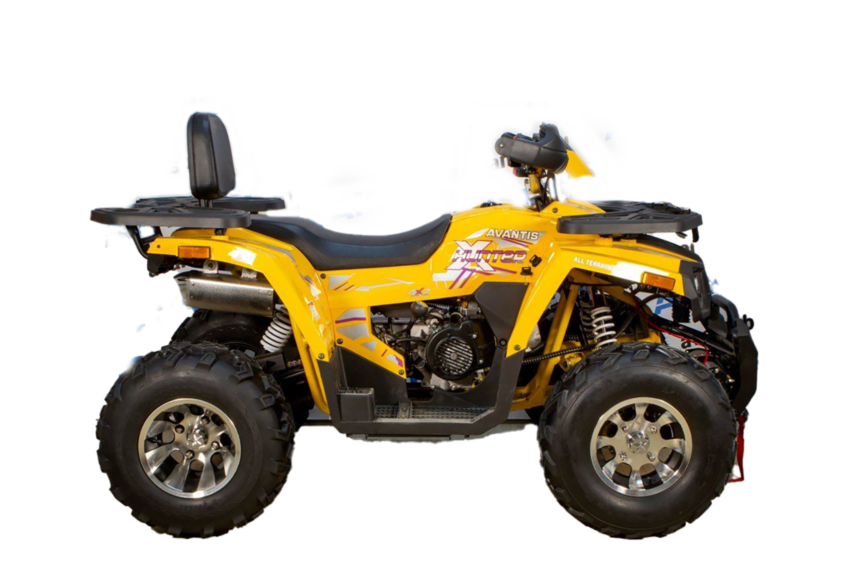 Квадроцикл Avantis H200 Big Premium топовая комплектация «большого охотника». Он создавался специально для тех любителей бездорожья, которые даже в условиях оффроуда не готовы отказываться от удобства и требуют от техники самого лучшего.Помимо стандартного для данной серии оснащения вроде кенгурятника, армированных тормозных шлангов и яркой LED-панели, квадроцикл оснащен электролебедкой и фаркопом, которые незаменимы на бездорожье. Также здесь предусмотрены подогрев ручек руля, удобная спинка для пассажира, зеркала заднего вида, дополнительное освещение и литые диски R10, что делает Авантис Хантер 200 Биг Премиум не просто мощным среднекубатурником, а полноценным мотовездеходом для комфортного отдыха.Если говорить о технической составляющей, то у Avantis Hunter 200 Big Premium параметры аналогичны остальным представителям серии: двухсоткубовый двигатель 1P63QMK отвечает за разгон до 70 км/ч и мощную тягу — поэтому квадроцикл одинаково уверенно чувствует себя как в скоростных заездах, так и при форсировании сложных участков. Благодаря балансирному валу удалось максимально снизить лишние вибрации, а вместе с этим — повысить уровень комфорта как водителя, так и пассажира.