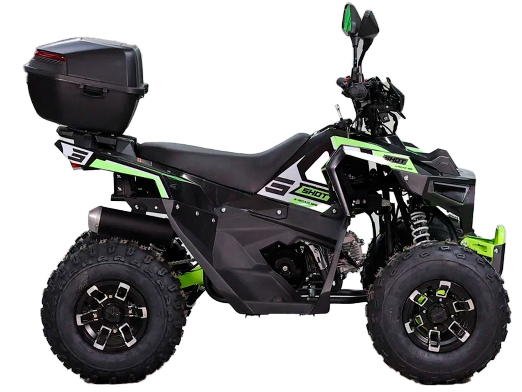 SHOT X-ROAD 125 — лёгкий, мощный и готовый к приключениям.Если тебе нужен универсальный квадроцикл для активного отдыха, загородных поездок или лёгкого бездорожья, SHOT X-ROAD 125 — отличный выбор. Он объединяет в себе надёжность, мощность и современное оснащение в компактном и уверенном корпусе.Двигатель и ходовая часть:Мотор YX 125 см³ с мощностью 12 л.с. — бодро разгоняется и уверенно держит обороты– Воздушное охлаждение — надёжность и простота обслуживания