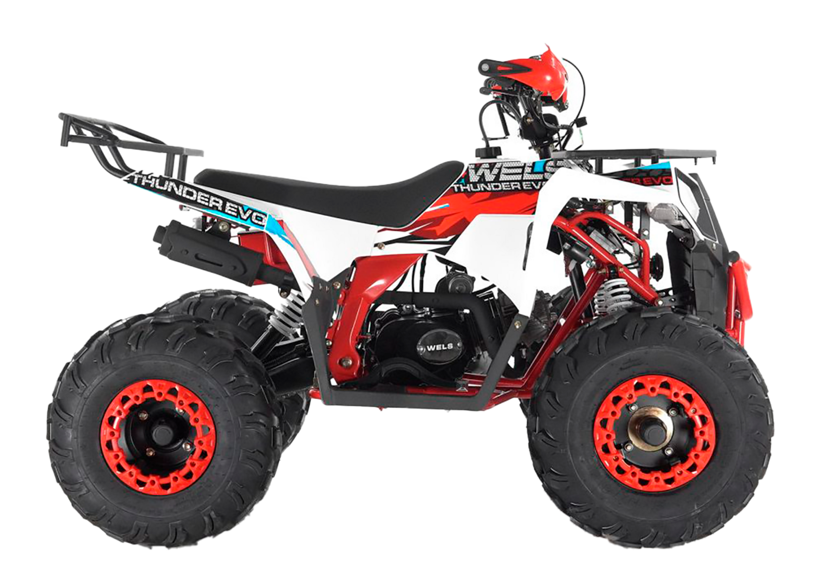 Стильная современная новинка 2019 года от компании WELS - квадроцикл для детей и подростков WELS THUNDER EVO X 125 предназначен для детей и подростков и обладает всеми необходимыми характеристиками, чтобы ребенок чувствовал себя на рулем настоящего квадроцикла, а его родители при этом были бы спокойны за безопасность юного пилота. ЛЮКСовая версия отличается от обычной наличием зеркал, дополнительной светодиодной оптики, спортивным глушителем, также квадроцикл укомплектован песочной резиной.125 кубового мотора вполне хватает для непоседливых гонщиков. Если же Вам кажется, что этого много - воспользуйтесь ограничителем скорости.Дисковые тормоза спереди и сзади обеспечат своевременную остановку перед препятствием.Защита рук в комплектации оградит ребенка от ударов веток и других помех.Песочная резина. Большие колеса 19,7-8, зад.: 18,9.5-8.Наличие укрепленных багажников спереди и сзади позволит установить на квадроцикл кофр и выезжать на природу с необходимым набором вещей и инструментов.Светодиодные фары для передвижения в темное время суток.Моточасы, светодиодные фары, звуковой сигнал, колпаки - все включено в комплектацию.Доступен в расцветках: черно-красный, бело-красный, живописно-красный, зеленый камуфляж