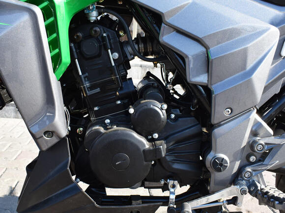 Regulmoto T-Leopard 300 – обновленная модель популярного мотоцикла известного производителя, которую вы можете купить в нашем интернет-магазине с доставкой в Ваш регион. Кроме современного вида и высокой надежности в эксплуатации этот аппарат отличают непревзойденное соотношение достойного качества и доступной стоимости. Топовая модель линейки мототехники ведущего китайского производителя Senke, дорожный мотоцикл Regulmoto T-Leopard 300, оснащается 4-тактным 300-кубовым двигателем с водяным охлаждением и балансировочным валом, установленным в стальной раме на сайлентблоках, что позволило свести к минимуму вибрацию при работе мотора. Подвеска мотоцикла представлена усиленной телескопической вилкой перевернутого типа спереди и моноамортизатором сзади. За безопасность отвечают двухдисковые 4-поршневые тормоза на переднем колесе и дисковый 2-поршневой тормоз на заднем колесе, а также полный комплект светового оборудования на светодиодных элементах, галогеновая передняя фара и зеркала заднего вида. Большое внимание создатели Regulmoto T-Leopard 300 уделили деталям – с первого взгляда мотоцикл подкупает отличным внешним видом, который реализован благодаря высокому качеству покраски, качественному дизайну элементов пластикового обвеса. Довольные владельцы аппарата отмечают ровную работу двигателя во всем диапазоне оборотов, отсутствие излишней вибрации, плавное и четкое переключение передач, а также превосходную управляемость и отличную работу двухдискового переднего тормоза. Аналогово-цифровая панель управления легко читается и предоставляет райдеру всю необходимую информацию. Дополнительный функционал мотоцикла представлен встроенной радиомагнитолой, воспроизводящей mp3-треки с подключаемой к USB-порту флешки. Высокая надежность аппарата обусловлена соответствующим качеством компонентов, узлов и агрегатов, качественной сборкой и скрупулезным производственным контролем. Техническое обслуживание и сервис делают проще наличие всех необходимых деталей, кроме того, их невысокая стоимость делает мотоцикл еще доступнее. Regulmoto T-Leopard 300 способен стать отличным выбором в качестве первого мотоцикла для начинающего мотоциклиста или будет вторым «рабочим» номером в гараже опытного райдера.