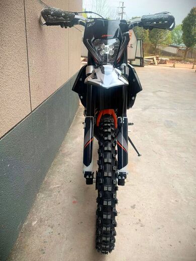 ДОПы New мощная тормозная гидравлическая система с дисками диаметром 240 мм, звезды 13t – 49t, «зубастые» покрышки Carrystone 80/100-21 спереди и 110/90-18 сзади. Мотоцикл оснащается полностью светодиодной фарой головного света, грипсами и ручкой газа Nibbi Racing, цепкой шкуркой сиденья
