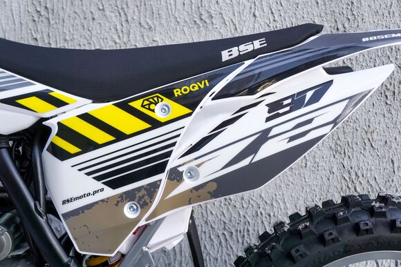 ДОПы New Всепоглощающая подвеска, прогрессия задней подвески, прочная стальная рама BSE, вилка “перевертыш,” мощная гидравлическая тормозная система, буксаторы на всех колёсах, внедорожная резина – BSE Z2 не спасует в условиях бездорожья. Комфорт. Этого на BSE Z2 в избытке: LED фара, электростартер, удобное сиденье, широкий удобный алюминиевый руль, защита рук, прозрачный бак.