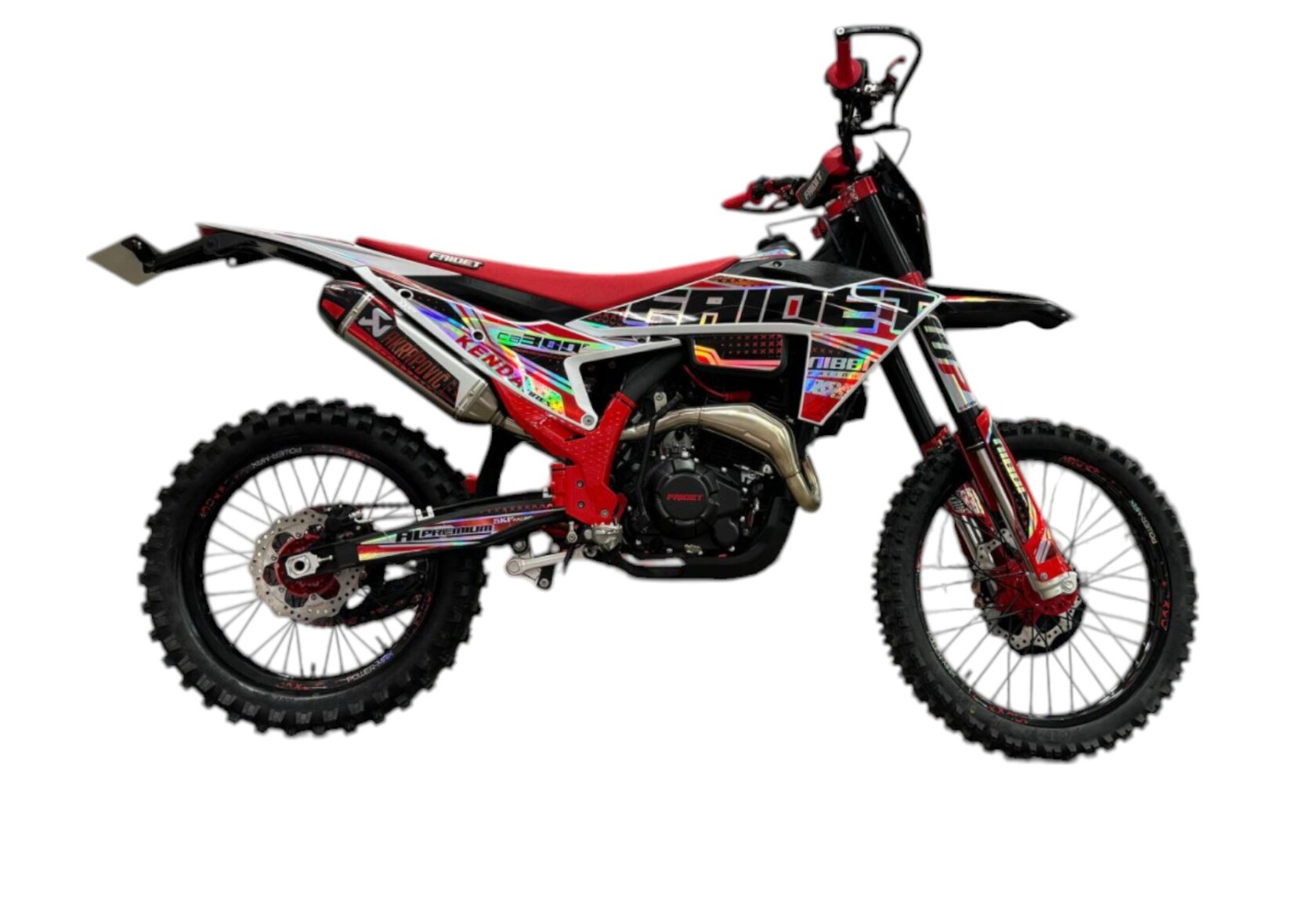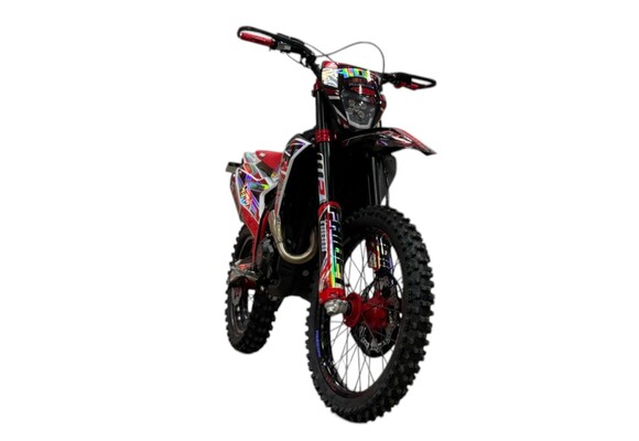 В сердце лежит двигатель проекта CB300F – ZS175FMM на 300 куб.см. с мощностью 24,5л.с., в паре с карбюратором NIBBI RACING BLACK PE-30 SPORT-SERIES для исключения провалов и гарантии правильной подачи смеси в нужном объеме!5-ступенчатая КПП со сцеплением ProLine легкого выжима!Все это установлено на раму KTM 2024 – идеальная развесовка, малый вес и огромный запас прочности, благодаря Хромолибденовой стали! Защитой от коррозии является покрытие RAPTOR! Нет ржавчины и царапин!За устойчивость и маневренность отвечает австрийская WP Suspension, полностью настраиваема под ваши задачи и стиль езды!Прямоточная стальная трасса выхлопа с глушителем на базе разработок именитого бренда AKRAPOVICH с системой POWERBOMB.Головной свет, оснащенный 5 светодиодными линзами и габарит, совмещенный со стоп сигналом позволят безопасно кататься в любое время суток.Легкосплавные, алюминево-кремневые, колесные диски UNISON, фрезерованные алюминиевые ступицы CNChub – наилучший баланс прочности и веса! Резина KENDA/Cordial подходит как летнего эдуро, так и для зимнего дерби т.к. с легкостью выдерживает вкручивание шипов. Композитные буксаторы плотно фиксируют покрышку не позволяя ей прокручиваться.Тормозная система ANJIE (from BREMBO) выбор настоящих профессионалов! Правильная геометрия суппорта зажимает диск, а не старается его «перекусить»! Тормозные диски KTM – вентилируемые, большого диаметра для уверенной остановки и достаточного рассеивания тепла, которые не поведут! Все это дело закрывает кожух PRO CAKEN!Система подачи топлива NIBBI RACING BLACK PE-30 SPORT-SERIESВыхлопная система из алюминия AKRAPOVIC с POWERBOMBУсиленная цепь RK520 CHOHO TOP-SERIESLED-фара и задний габаритВстроенный спидометр и USB-портПрофессиональное антискользящее сидение ACERBISРуль RENTHAL FATBAR 7075 из анодированного алюминияЗащита рук NIBBI RacingСиликоновые грипсы NIBBI Racing LockOnКурки неломайки фрезерованные, алюминиевые от CNCПластиковая защита цепи PRO CAKENЗащита руля Acerbis