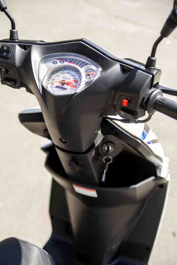 На стойке рулевой колонки расположен открытый бардачок для перевозки небольших предметов; для надежного хранения более габаритных предметов можно использовать вместительный подседельный багажник. Площадка заднего багажника также позволит установить кейс для перевозки запасного шлема и других вещей.