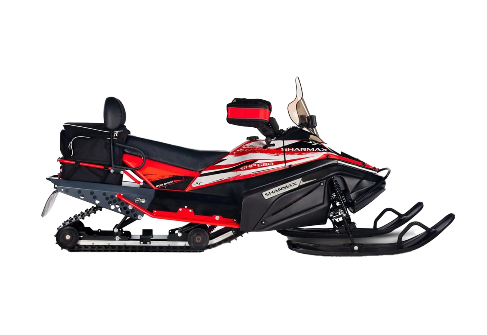 Снегоход Sharmax SHP 680 Luxe — это утилитарно-туристический снегоход для любых задач и целей. Добраться до места рыбалки, охоты, отдыха или просто провести время с друзьями или семьёй — всё это становится возможным с Sharmax SHP 680 Luxe.Снегоход Sharmax SHP 680 Luxe — это обновлённая модель утилитарного снегохода Sharmax SHP 680, который уже завоевал доверие пользователей в сезоне 22-23. Снегоход получил ряд полезных изменений, включающих в себя: съёмный капот, обновлённую подвеску, усовершенствованную топливную систему и новую тормозную систему.Снегоход комплектуется вариаторной коробкой переключения передач компании «Сафари». Такой вариатор установлен на снегоходах большинства крупнейших производителей. Коробка зарекомендовала себя как один из самых надёжных агрегатов с высоким ресурсом и неприхотливостью в обслуживании. Она также комплектуется усиленным ремнем вариатора от чешского производителя Rubena.Багажная площадка грузоподъёмностью до 70 кг с возможностью установки кофра. Фаркоп входит в базовую комплектацию и позволяет буксировать сани весом до 400 кг. Общая грузоподъёмность снегохода Sharmax SHP 680 Luxe составляет 300 кг. Такой показатель достигается благодаря продуманной конструкции рамы и использования высококачественной стали.Sharmax SHP 680 Luxe оснащён яркой светодиодной фарой и лентой на передней части снегохода, что обеспечивает впечатляющий уровень освещённости в тёмное время суток. Гидравлическая тормозная система с 120-миллиметровым тормозным диском и увеличенным суппортом повышенной эффективности даст возможность остановить снегоход на крутом склоне.При приобретении снегохода Sharmax SHP 680 Luxe вас ждут такие опции, как: подогрев ручек и курка газа, функциональная панель приборов, которая позволит наблюдать и контролировать все важные показатели при эксплуатации техники, аэродинамичное ветровое стекло правильной формы. Отдельно стоит отметить многорычажную подвеску, которая обеспечит отличные ходовые характеристики и управляемость.