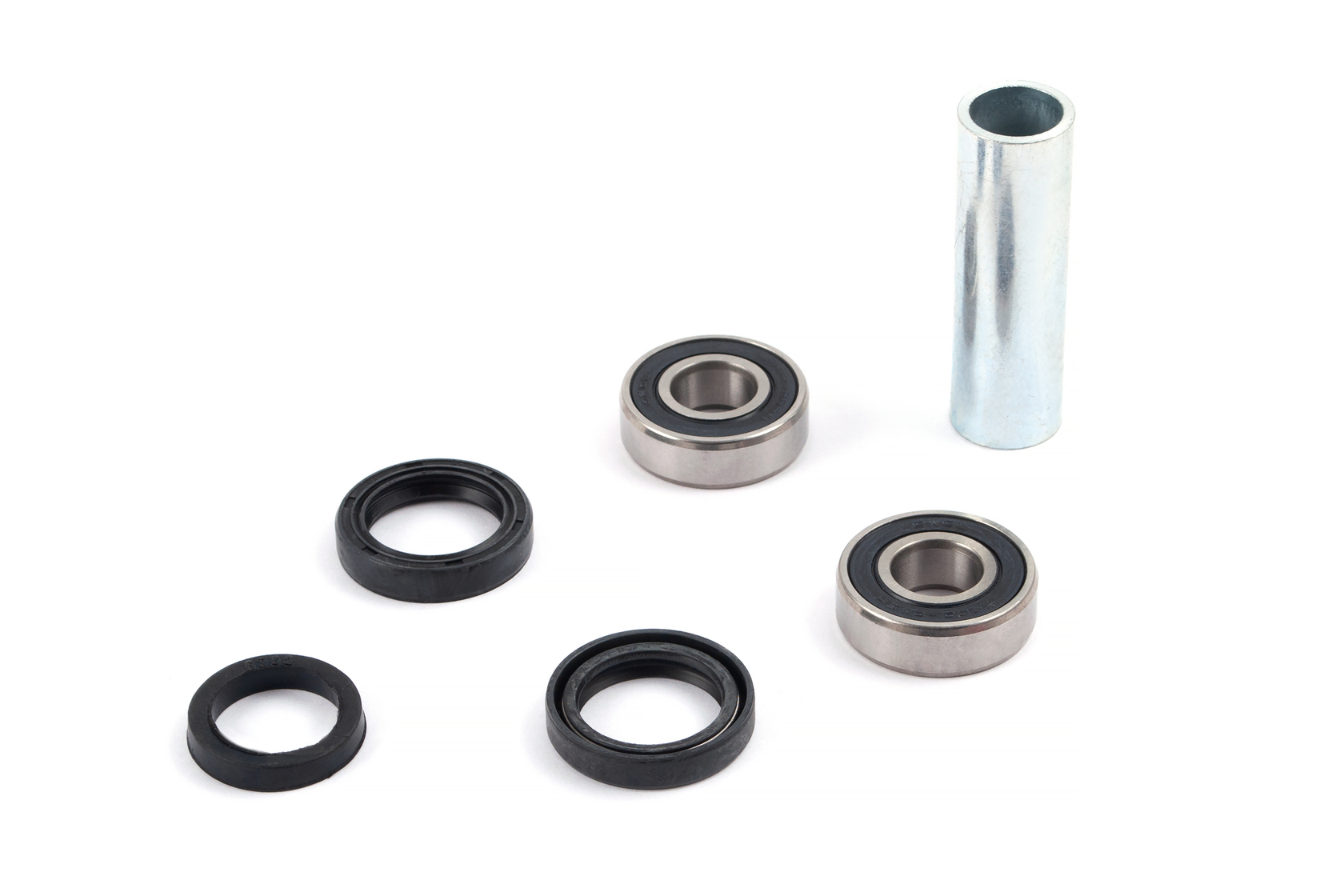 Готовый комплект для обслуживания и ремонта ступицы переднего колеса. Включает подшипники, маслосъёмные сальники и втулку для быстрой и простой замены всех изнашиваемых деталей, что важно для поддержания плавности хода и надёжности управляемости.